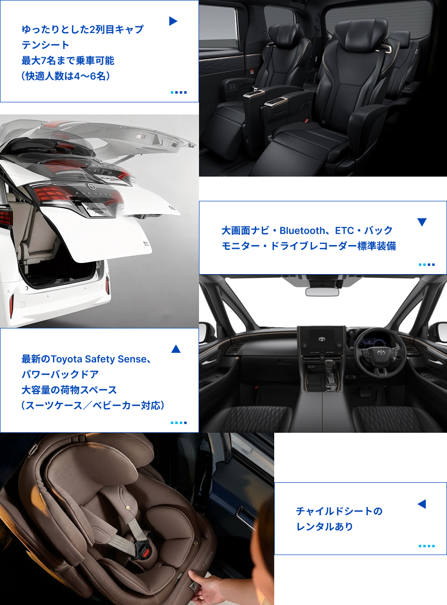 広々とした室内・高級感のある内装で、移動時間そのものが特別な体験に。